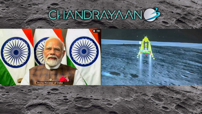 "India is now on the Moon and now is the time to walk on the 'Chandra Path'," the prime minister said.
